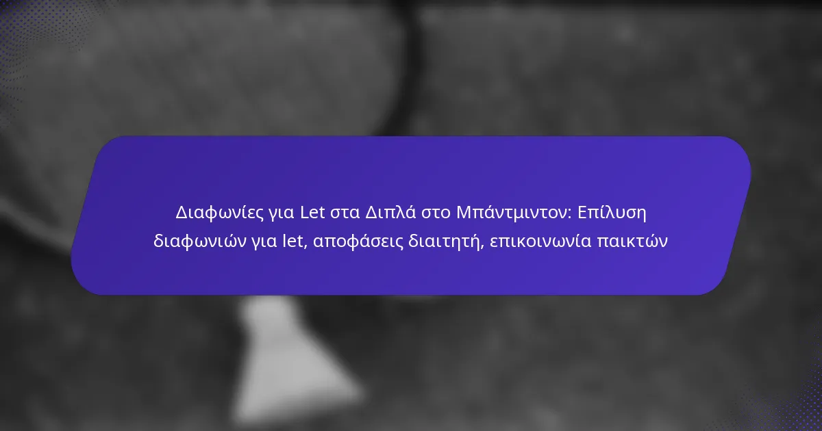 Στο διπλό μπάντμιντον, μια «λετ» καλείται για να σταματήσει το παιχνίδι και να επαναληφθεί ένα πόντος λόγω απρόβλεπτων περιστάσεων που διαταράσσουν την ανταλλαγή, εξασφαλίζοντας τη δικαιοσύνη στο παιχνίδι. Οι διαιτητές είναι υπεύθυνοι για τη λήψη αυτών των αποφάσεων με βάση καθορισμένα κριτήρια, ενώ η αποτελεσματική επικοινωνία μεταξύ παικτών και αξιωματούχων είναι απαραίτητη για την επίλυση διαφορών και τη διατήρηση ενός θετικού περιβάλλοντος στο γήπεδο.